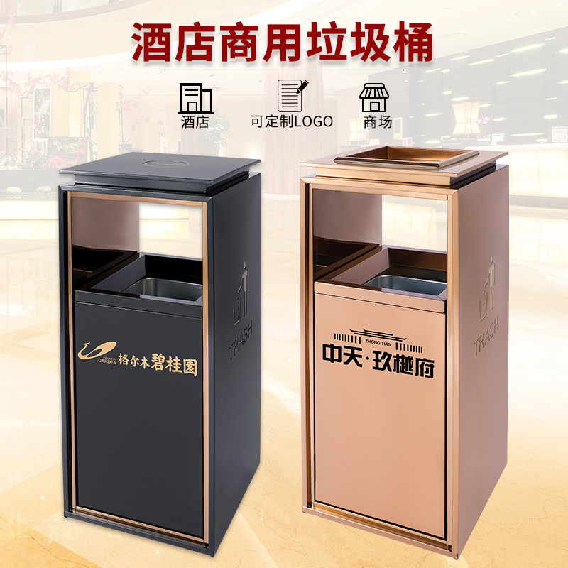 Custom hotel stainless steel trash can Lobby vertical with ashtray Outdoor shopping mall hall Sample house Display center Elevator entrance