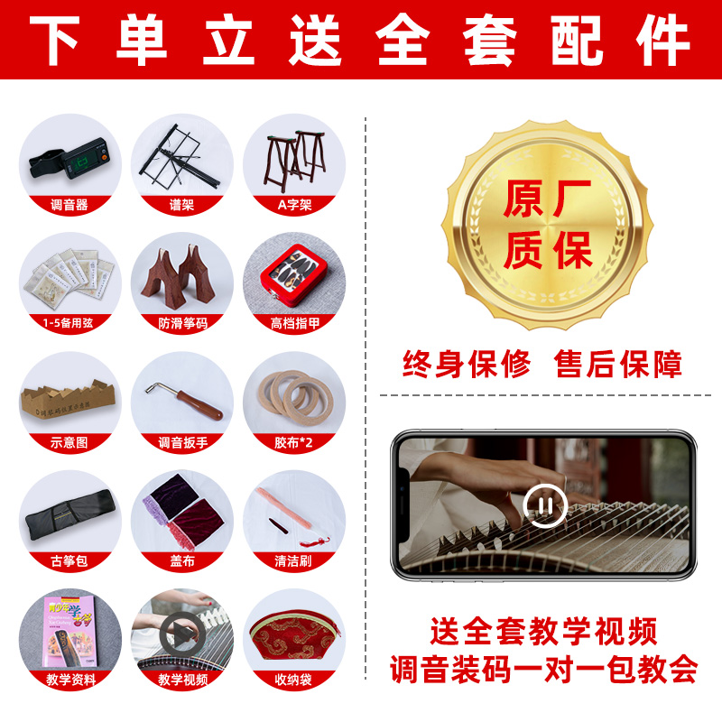 163cm playing zheng standard accessories 130cm portable zheng (black sandalwood plain) full set of accessories 130cm portable zheng (red sandalwood plain) full set of accessories 163c