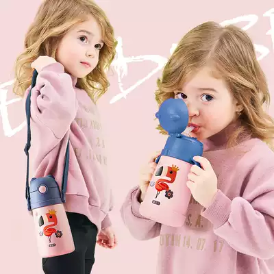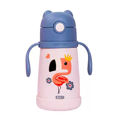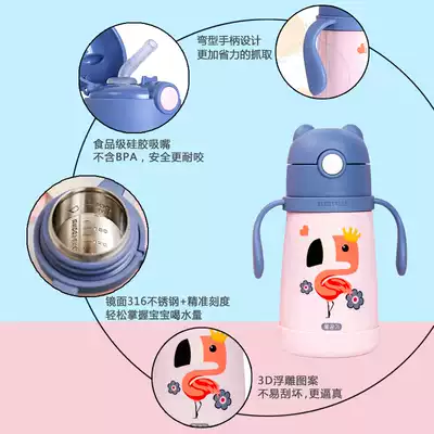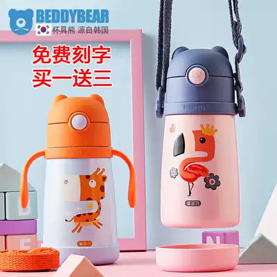 Korean cup bear learning drinking cup Children's thermos cup Small with straw handle scale Anti-fall baby thermos cup
