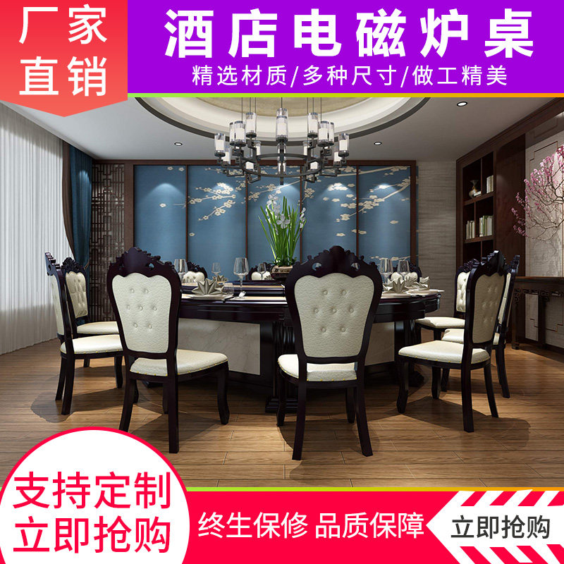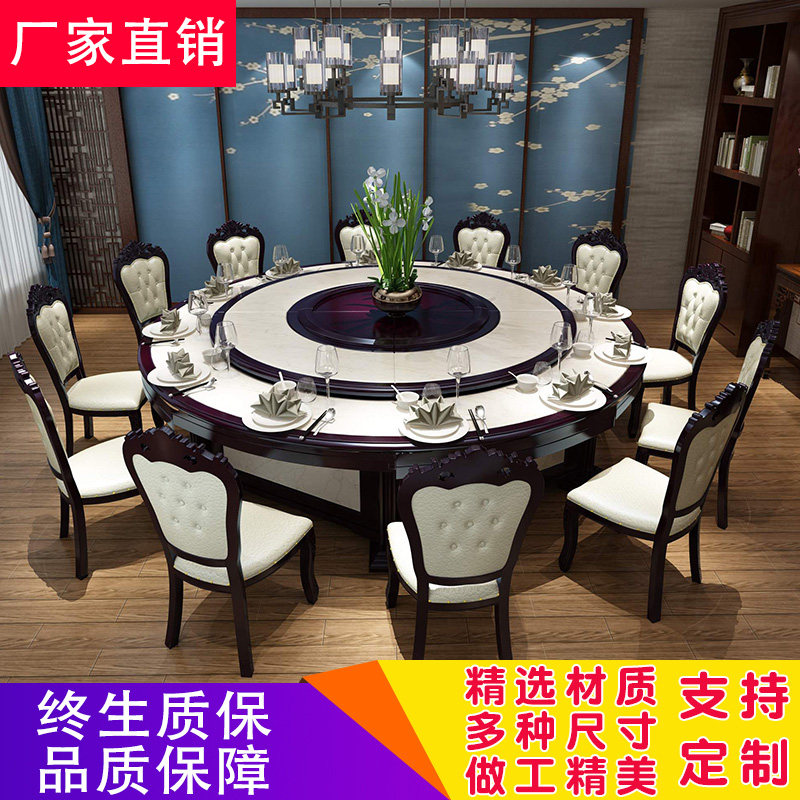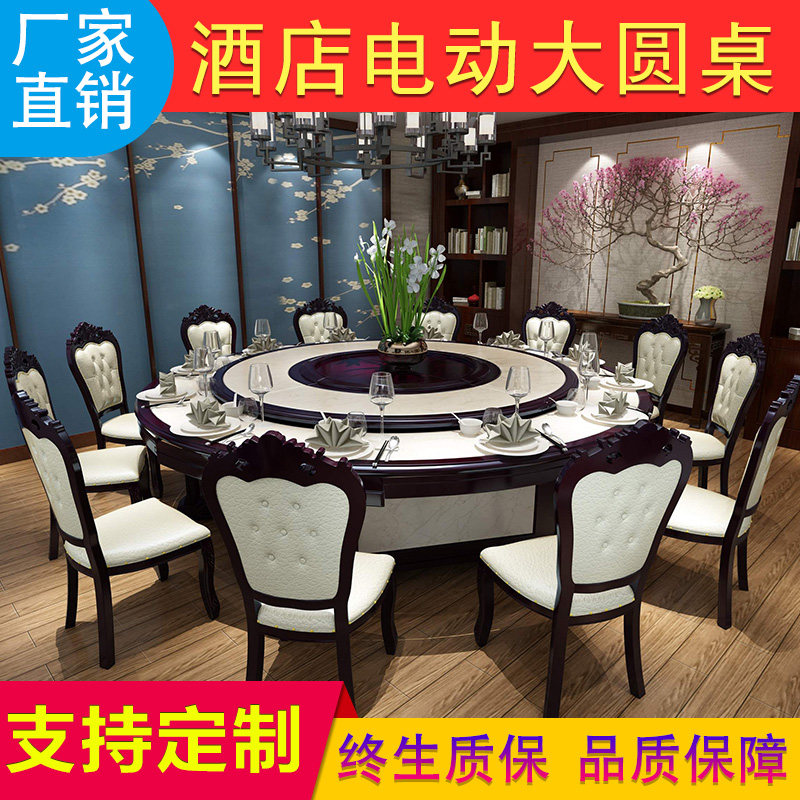 Luxury new Chinese hotel dining table Electric large round table High-grade imitation marble electric dining table 20 people hot pot turntable