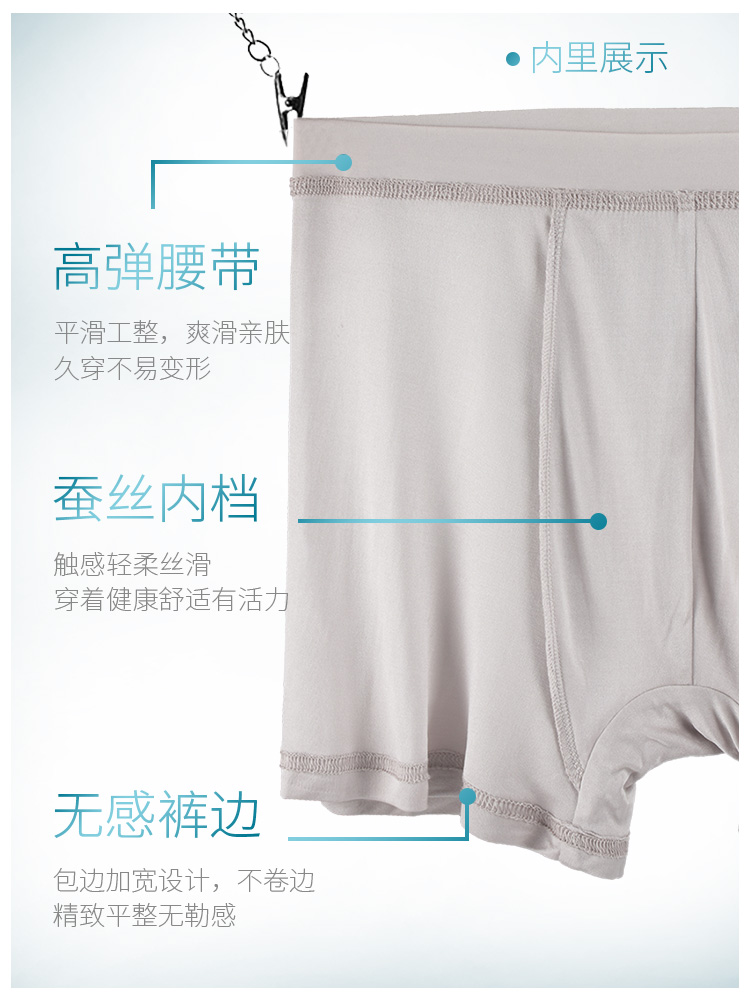 Hengyuan Xiang Men's Four Corner Pants Genuine Silk Thin and Seamless Pants Head Breathable Summer Silk Briefs Mulberry Silk Four-corner Pants