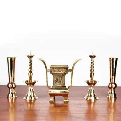 Pure copper five supplies of ornaments a set of Buddhist Hall dedicated Candlestick incense barrel five tribute kit home ancient sacrificial