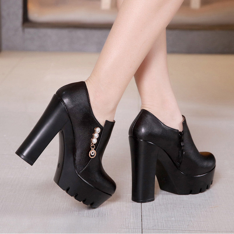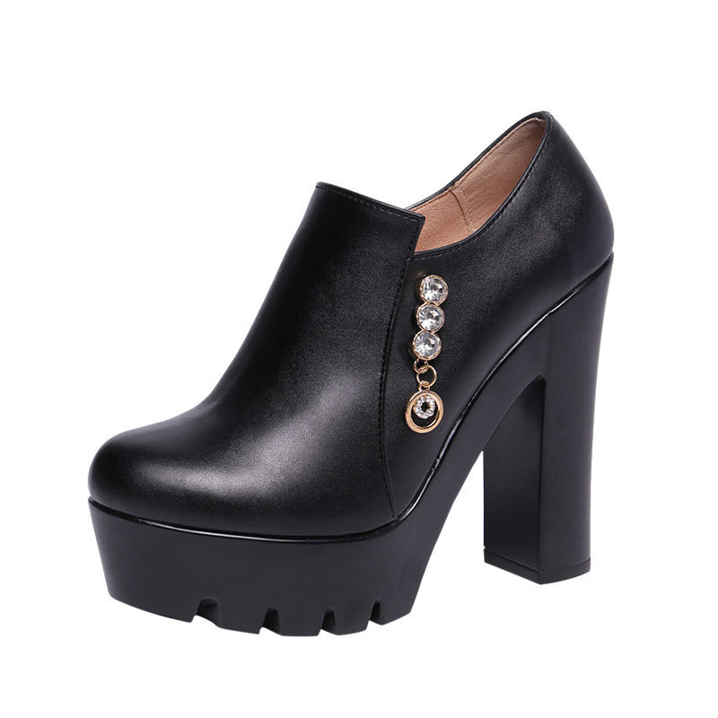 Genuine leather ultra high heel Hate Sky High Single Shoes Woman Waterproof Bench Coarse heel Muffin Bottom Deep Mouth Large Size 40-43 Yard Women Shoes