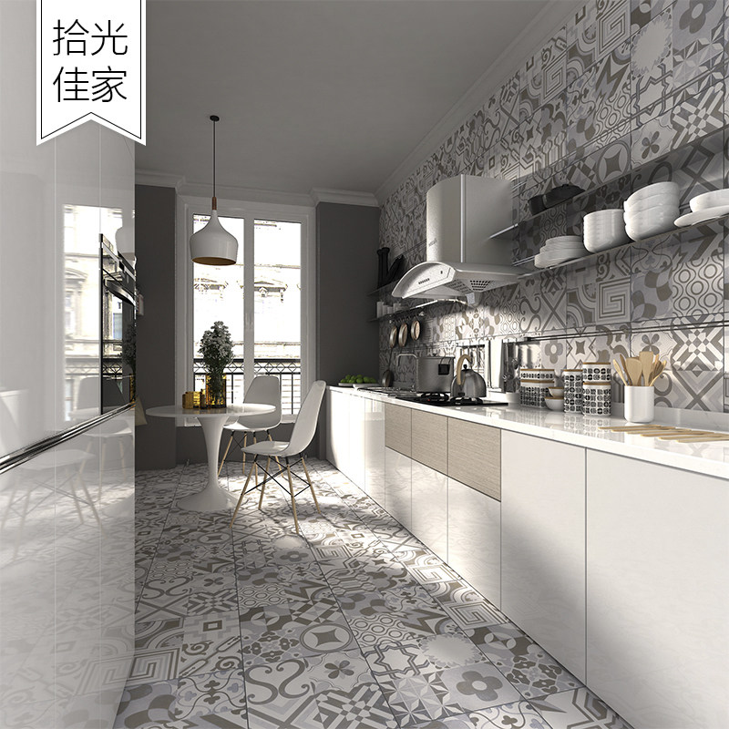 Cement gray retro floor tile indoor bathroom floor mosaic tile restaurant kitchen dirty wall brick non-slip small tile tile