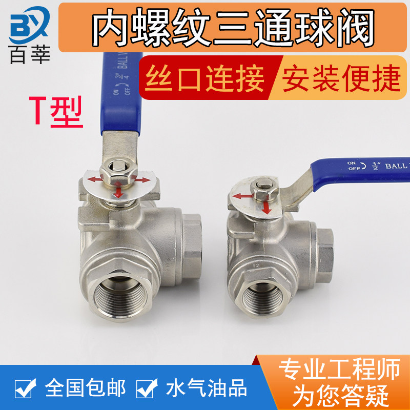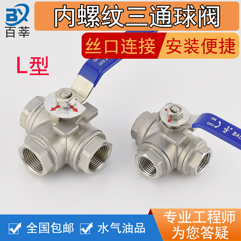304316 stainless steel L T type internal thread wire buckle tee ball valve Q14 15F-16P R 4 for 6 points DN25