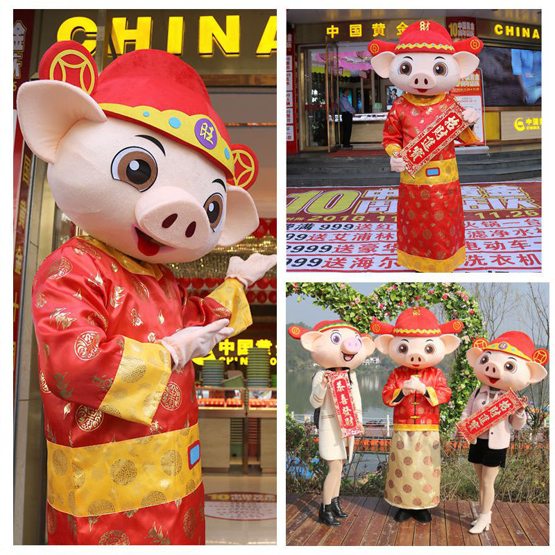 2019 Pig cartoon doll costume custom God of wealth New Year mascot adult walking doll costume suit performance costume