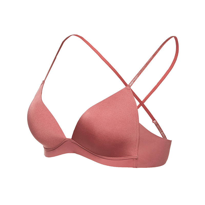Thin triangle cup rimless bra Cross beauty back underwear women's incognito glossy small chest sexy thin shoulder strap bra