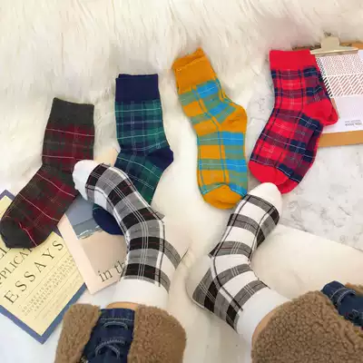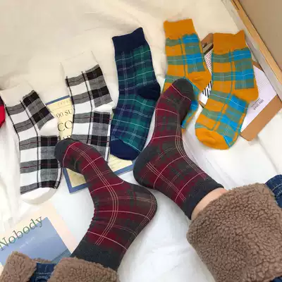 Wheat) British ins retro autumn and winter Joker Plaid pile pile of socks basic warm students men and women cotton socks