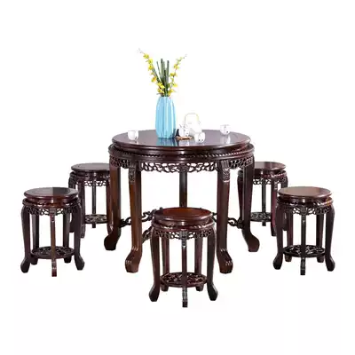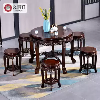 Wen Jingxuan Mahogany round table Round table Dining table Chinese drum table Drum stool combination Ebony tea table Small tea table Balcony table