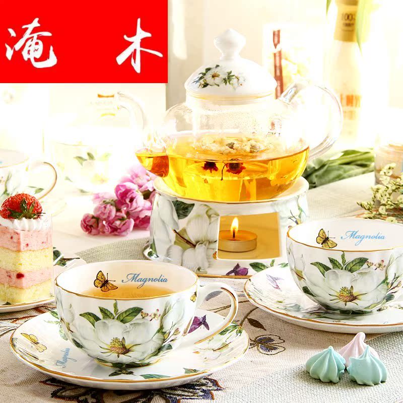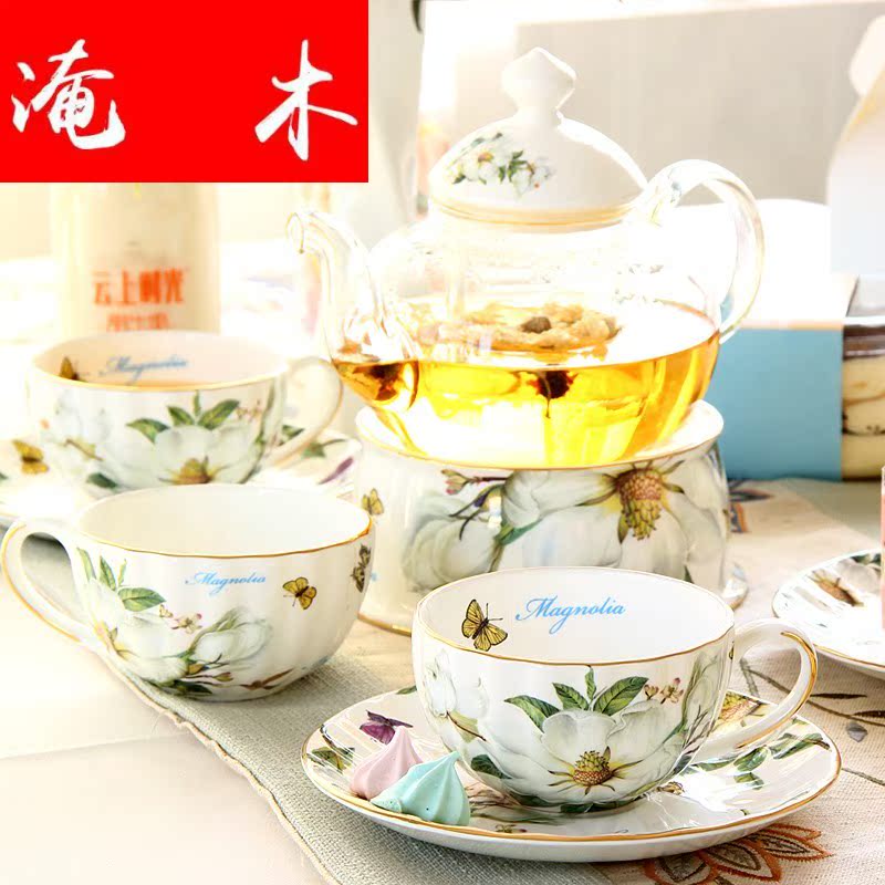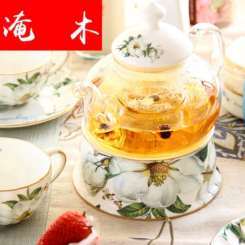 Locked household glass tea set ceramic flower tea pot heated cooking flower and grass afternoon tea cup European style