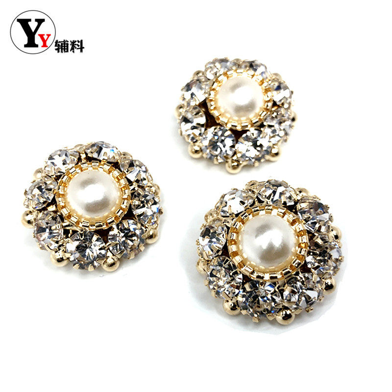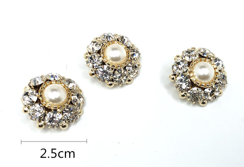 2 5cm gold rhinestone pearl button small button Knitted jacket round metal decorative button Korean edition accessories accessories