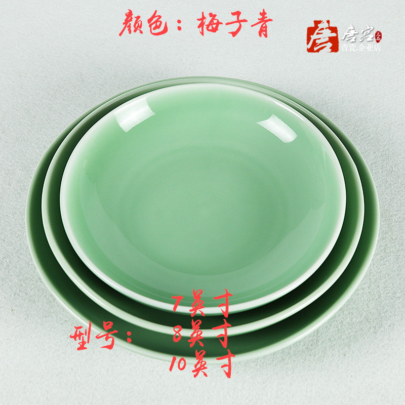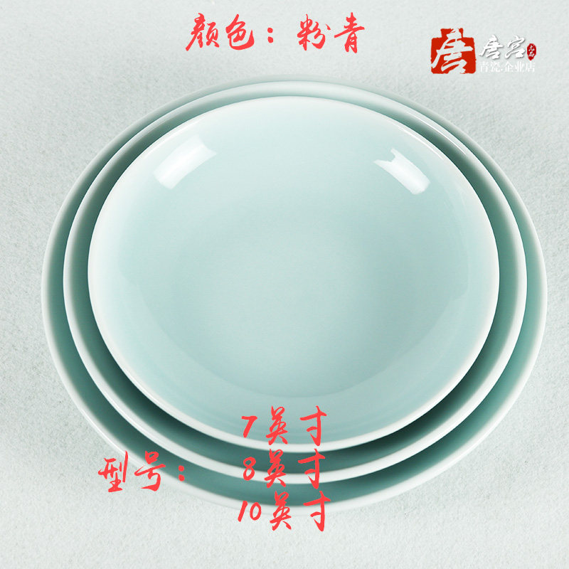 Tang Palace celadon creative household ceramic tableware 7-inch plain glossy plate food plate hotel bone dish