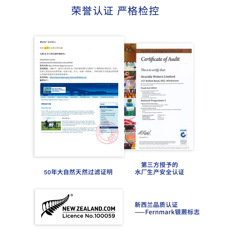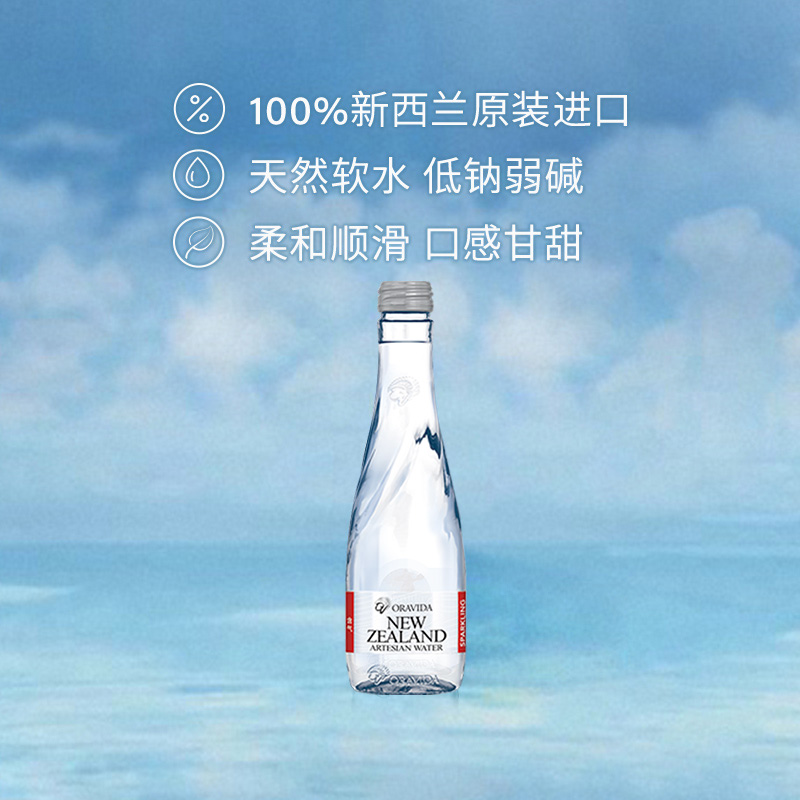 Oravida Lanville New Zealand imports natural weak alkali gas-containing water bubble water 300ml*3 glass bottles