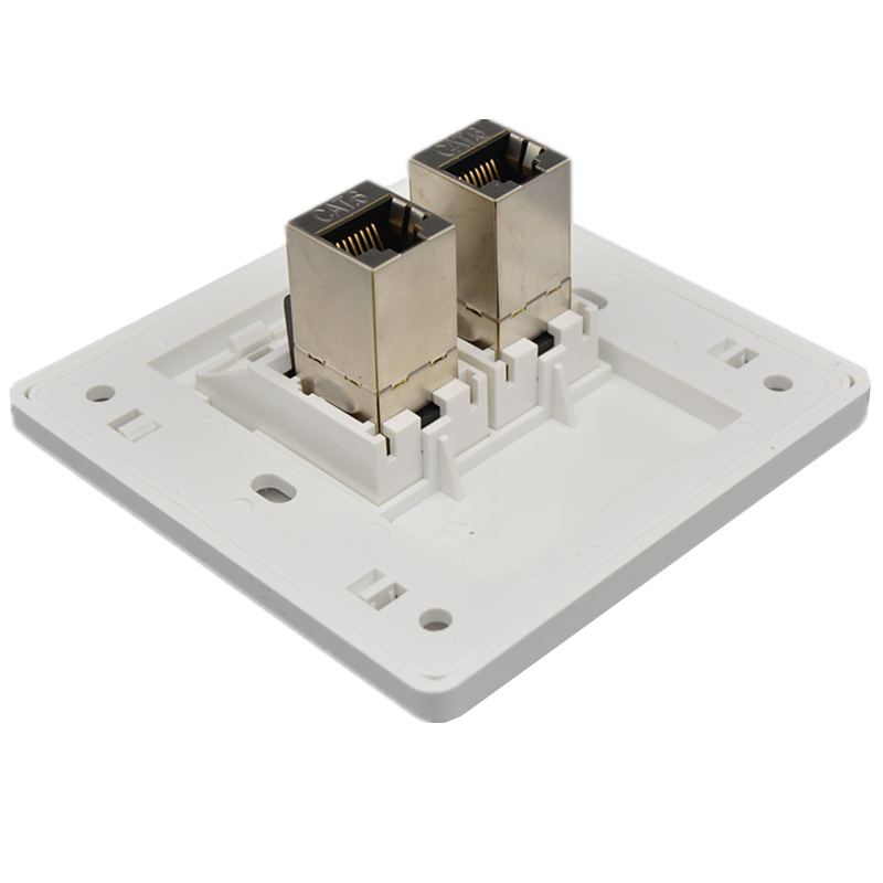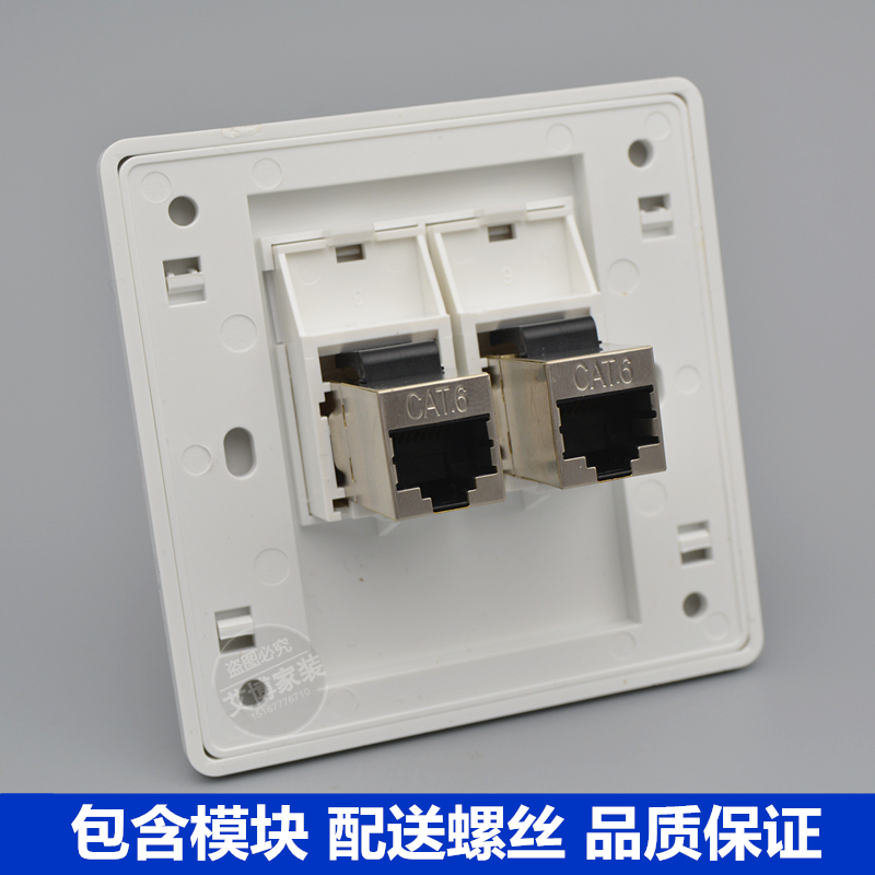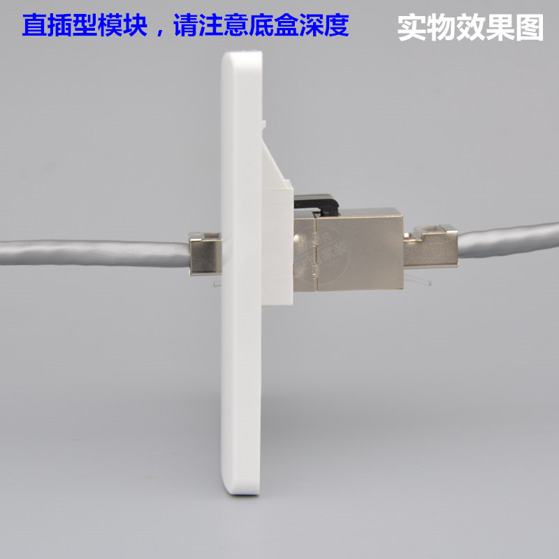 Dual-port straight-through six-type shielded network cable port socket gigabit computer module two-bit network docking double-pass head panel