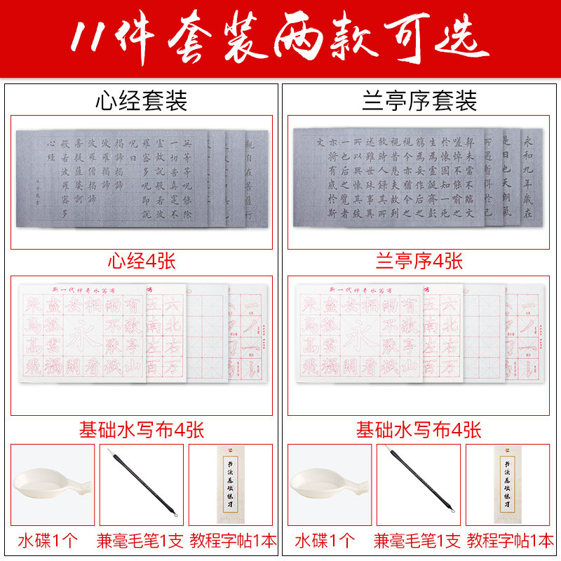 Brush writing post water writing cloth special primary school student set thickened quick dry beginner Yan Zhenqing soft pen water writing calligraphy cloth calligraphy introductory practice paper Qingshui Lanting set order wash cloth