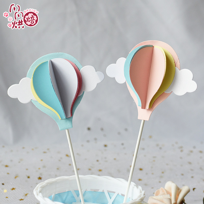 Creative Birthday Cake Decoration Plug-in Swing Piece Baking Double Fold Romantic cloud Dove Solid Hot Balloon Inserts