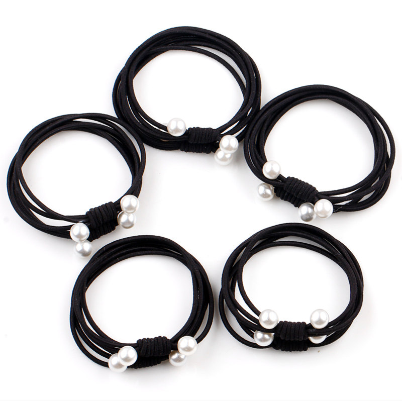 Korean Version Little Fresh Pearl Hair Ring High Elastic Leather Fascia Lady Zana Hair Brief Cute Horse Tail 100 Hitch Rubber Band