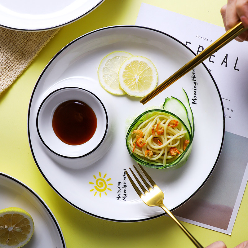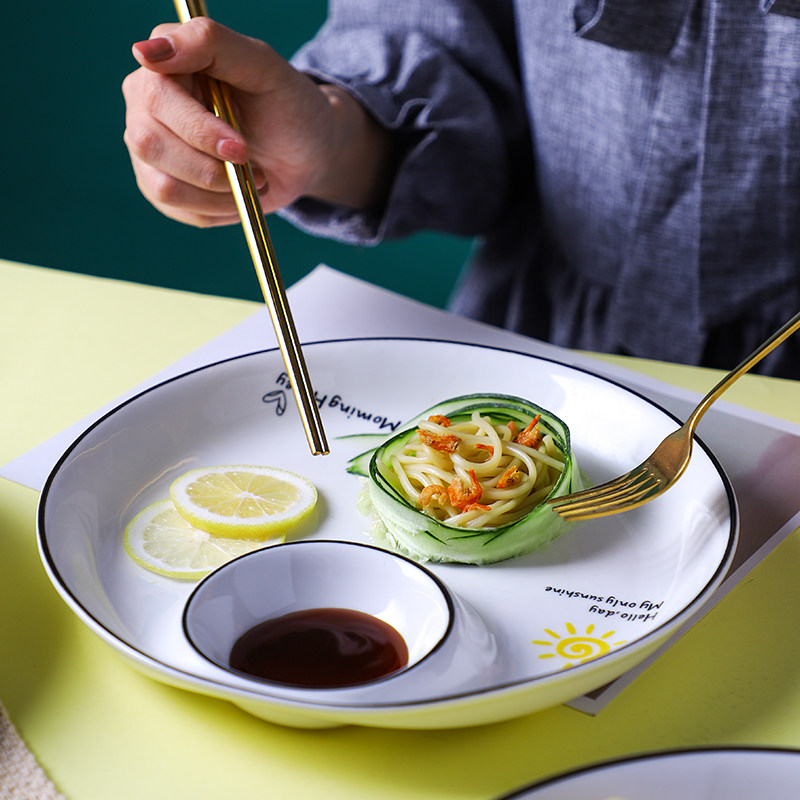Thai nostalgia creative Nordic dumplings plate with vinegar plate ceramic dumplings plate seasoning grid household cold dishes shrimp plate 615