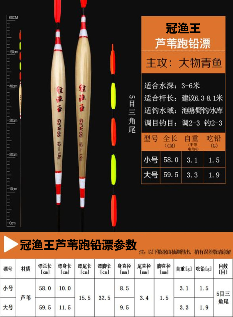 Crown fishing king big Reed self-reliance black pit Reed running lead drift professional diamond tail fishing fishing self-reliance floating float