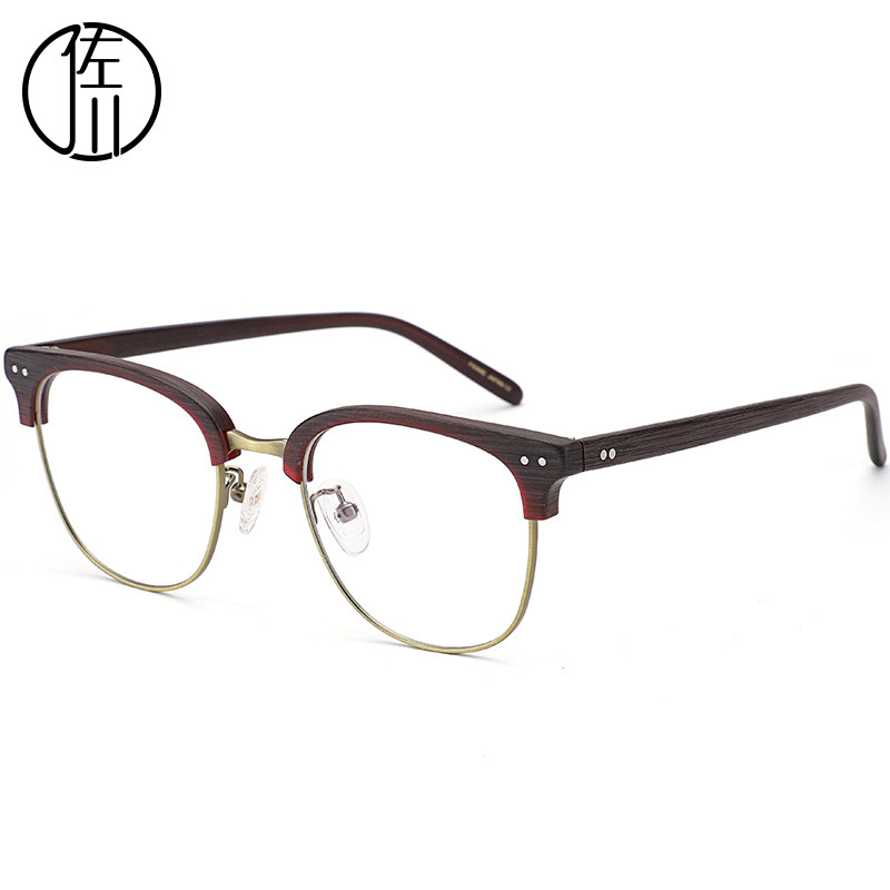 Zokawa wood grain eyewear frame male retro half-frame myopia eye frame female art round face wood spectacle frame male