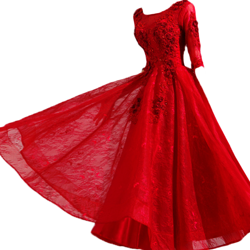 Angel Wedding Temperament Wine Red Brides Wedding Toast With short long sleeves Wedding Gown 8128Q
