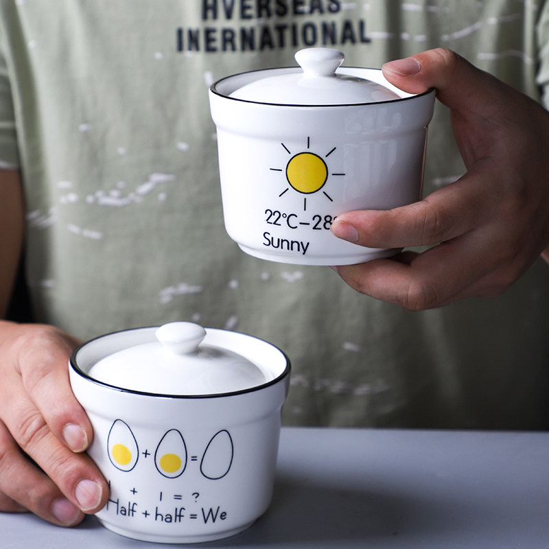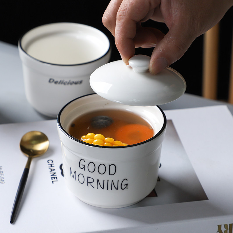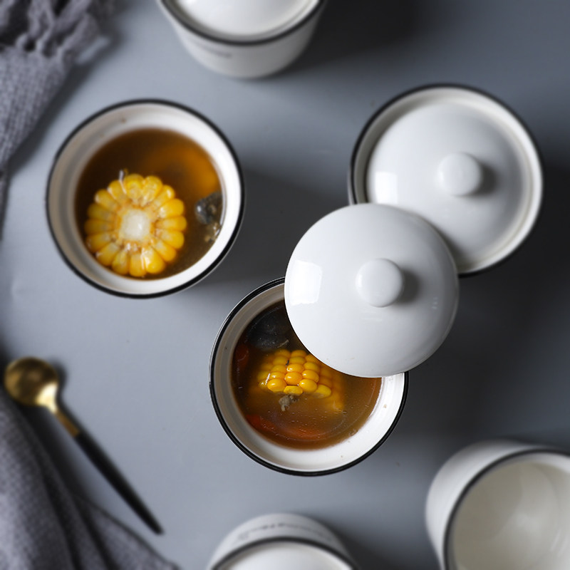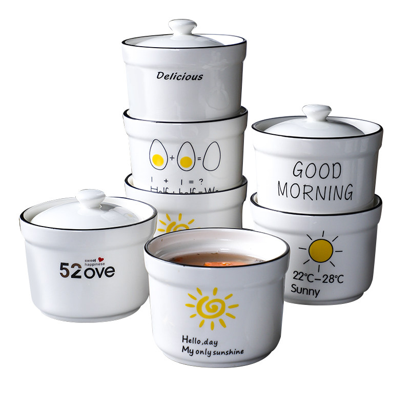 Teretention Ceramic Stew With Lid 1 Person -2 People Health Care Porridge Bowl Flush Household Small Water Steamed Egg Stew Soup 604