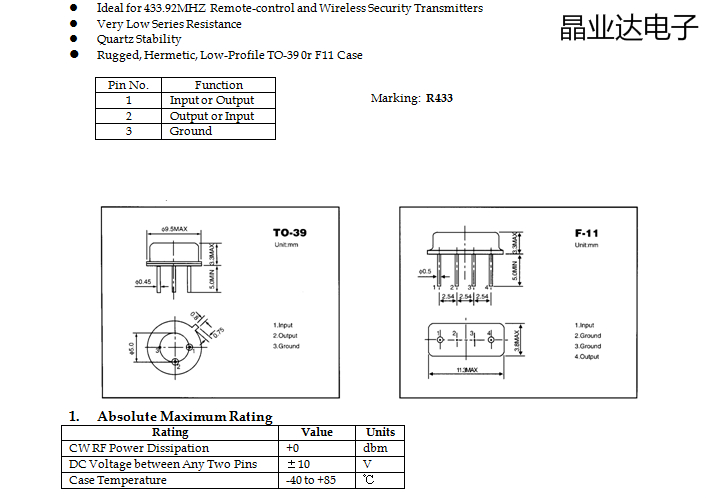 Straight insertion sound table filter 315M R315A resonator TO39 round 433 92M F11 crystal oscillator ± 75 -Taobao