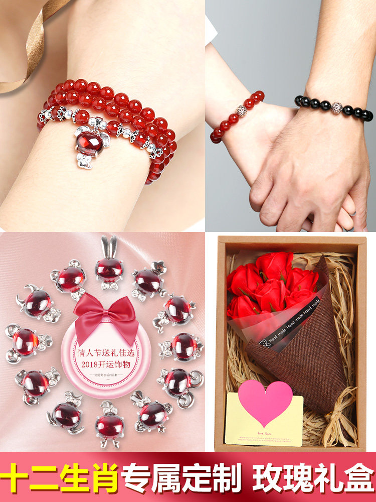 Natural red agate natal year couple's hand claws female twelve 12 zodiac cow tiger 925 crystal bracelet male gift