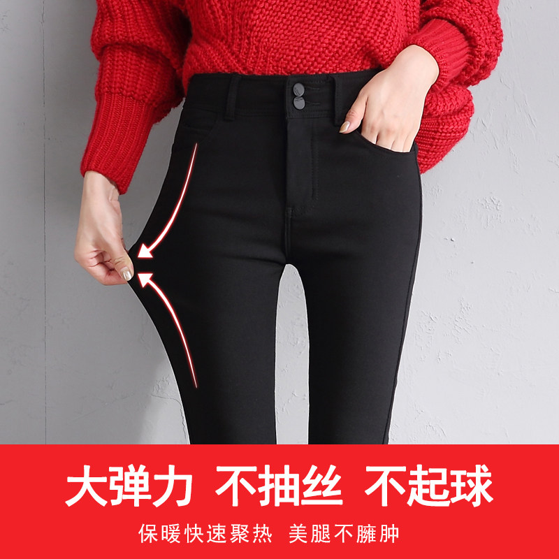 Black inner pants women's velvet thickened outer wear 2020 new autumn and winter high waist elastic warm pants small feet cotton pants