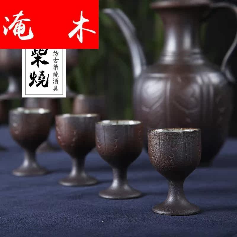 Flooded wood Jingdezhen Ceramics Wine Suit Imitation Ancient Chinese Liquor Wine Glass Home Wine Jug Firewood for Cooking Wine-Taobao