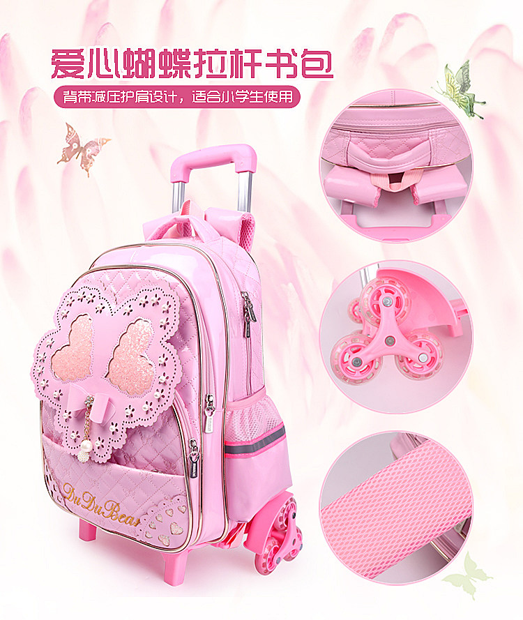 Waterproof PU leather Child pull-on bag 6-12-year-old girl Primary school pupil 1-6 Detachable shoulder bag delivered rain cover