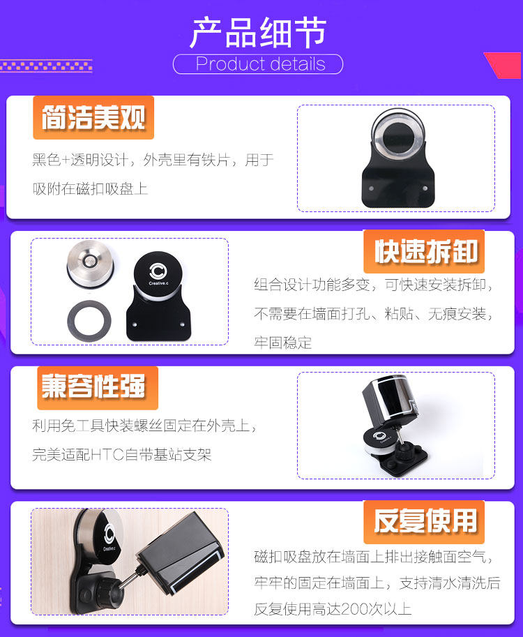 HTC VR glasses VIVE PRO Valve Index Small Faction Base Station Locator Wall no-dent bracket nail-free