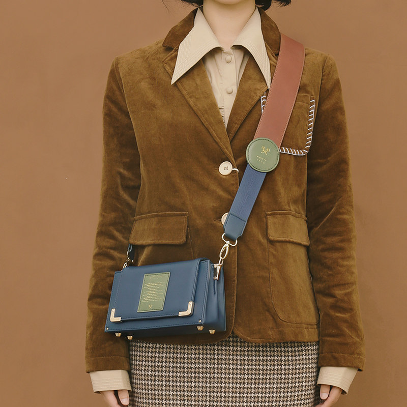 Brown (large shoulder strap) Blue (large shoulder strap) Brown (small shoulder strap) Blue (small shoulder strap) (the four corners of the bag have oil edges)