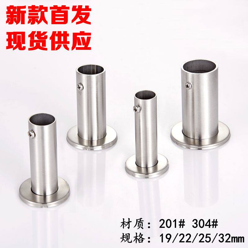 304 Lengthened Heavy-duty Stainless Steel Flange Seat Wardrobe Rod Accessories High Foot Round Pipe Seat Side-mounted Ball Clothes Rod