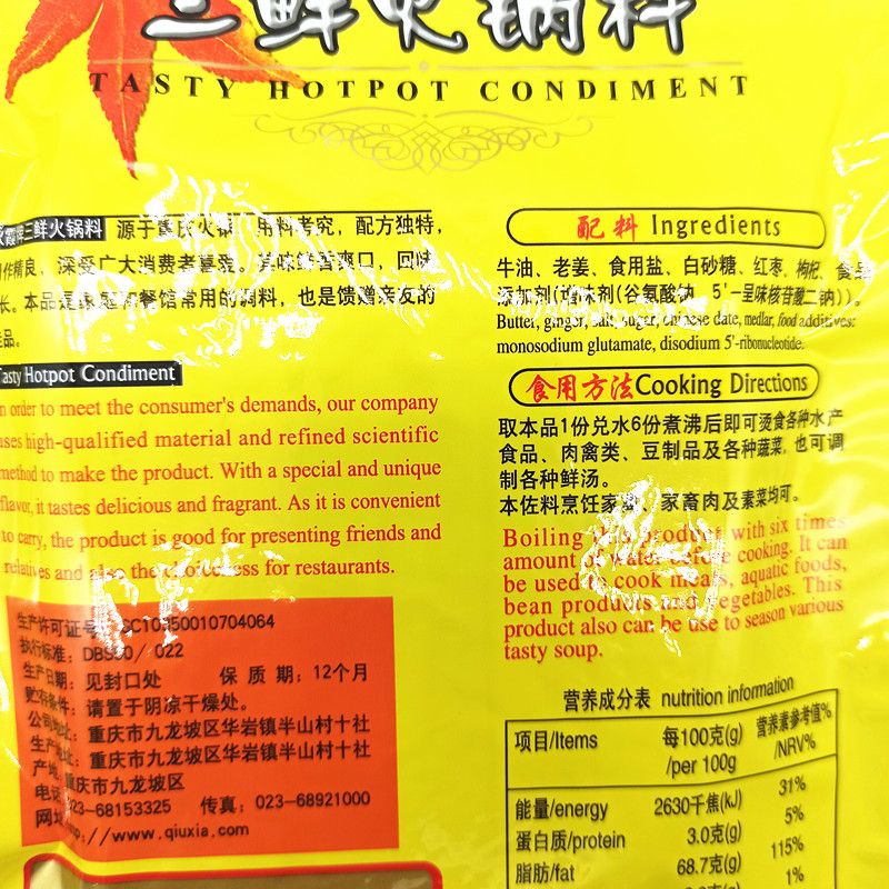 Chongqing Clear Soup Hot Pot Soup Base Qiuxia Hot Pot Soup Base Sanxian Hot Pot 170g*5 Bags Soup White Soup Seasoning