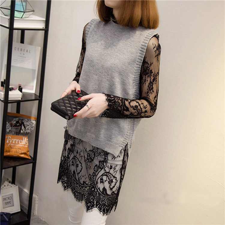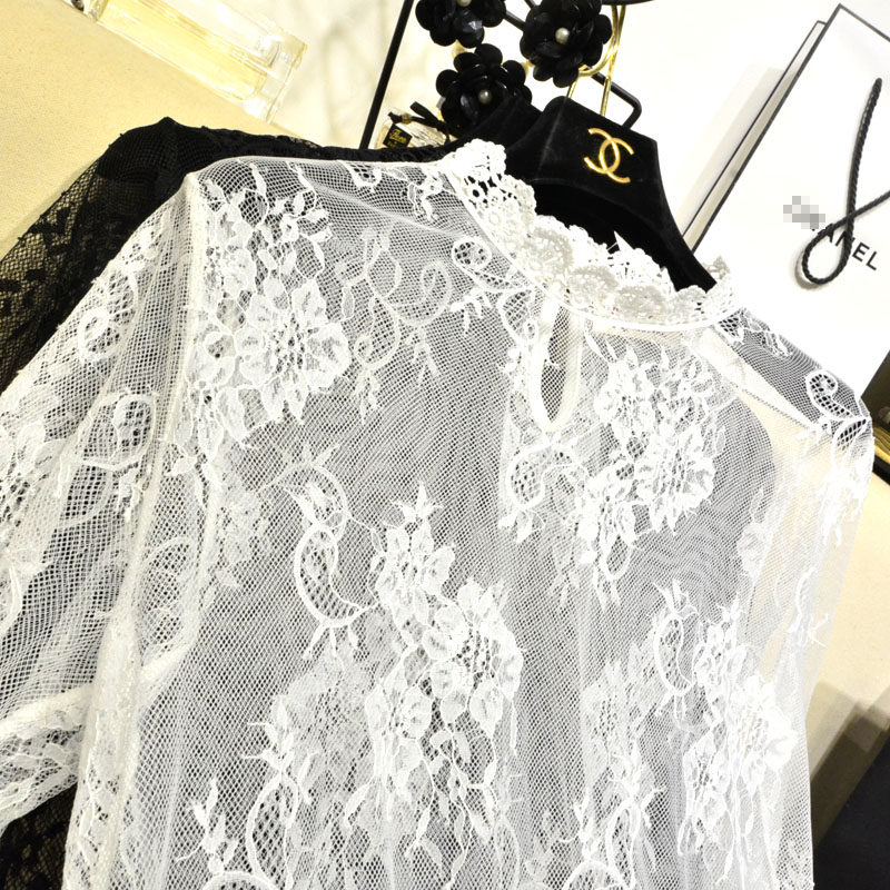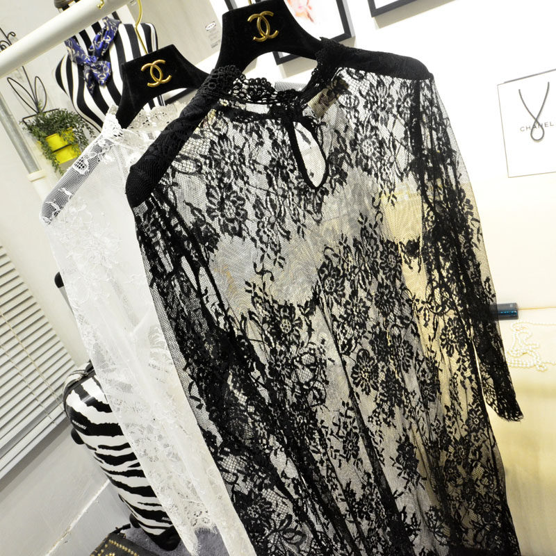 In spring, long sleeves with long sleeves sweet lace embroidery inside lace embroidery with perspective coat