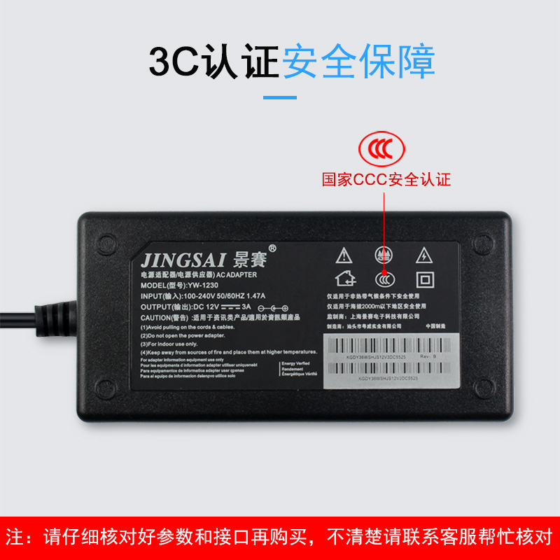 Jingsai 12V3A power adapter universal surveillance video recorder camera aoc Lenovo LCD display led display audio charger DC12V 2 5a DC switch power cord
