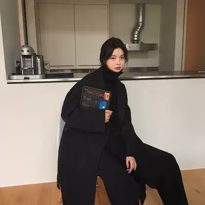 Fan Zhiqiao black woolen coat women's autumn and winter popular over-the-knee mid-length thickened woolen coat
