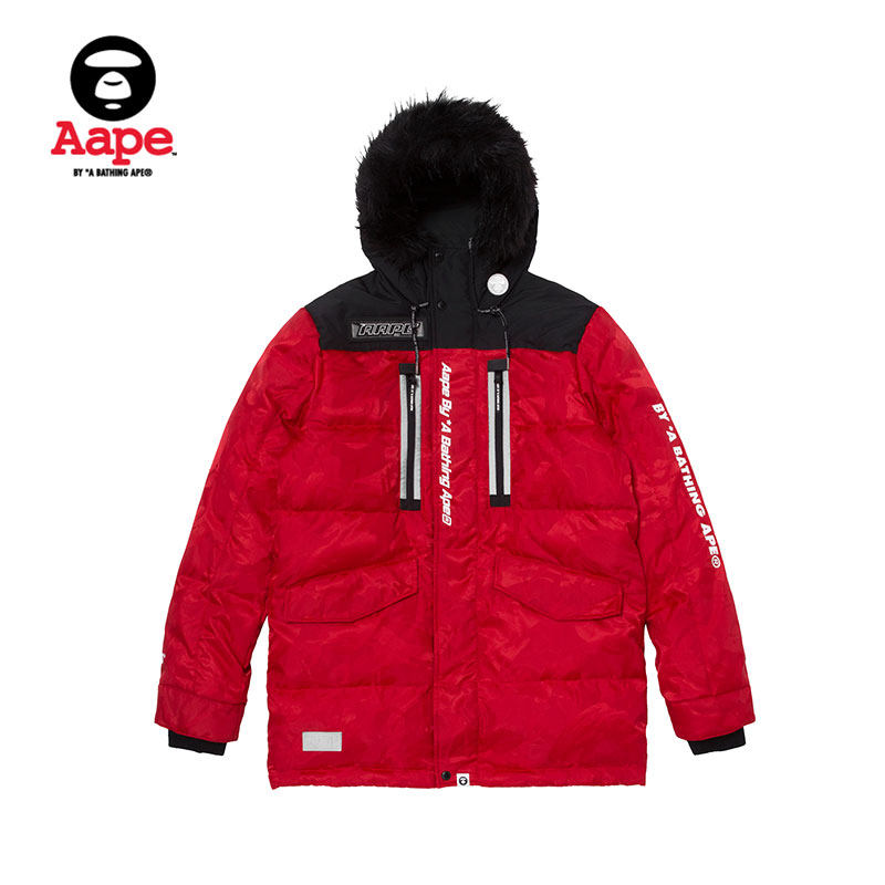 Aape Men's Autumn and Winter Printed Zipper Stitching Camouflage Hooded Down Jacket Jacket 7237XXB