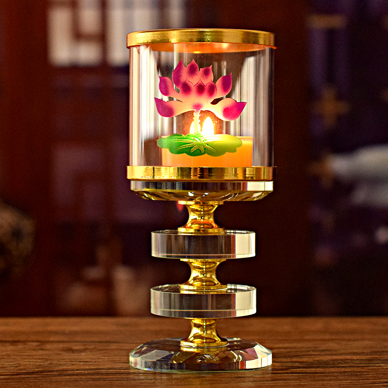 Buddha with crystal windproof lotus candlestick 4 hours and 8 hours dedicated to Buddha front butter lamp base candle base for lamp holder