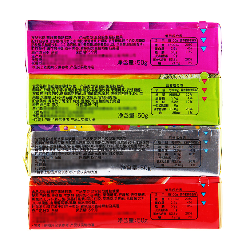 White sugar Maltose Edible hydrogenated oil Gelatin Fructose syrup Citric acid Lactic acid bacteria Beverage Maltitol Acacia Edible glucose Concentrated Grape juice Concentrated Apple juice