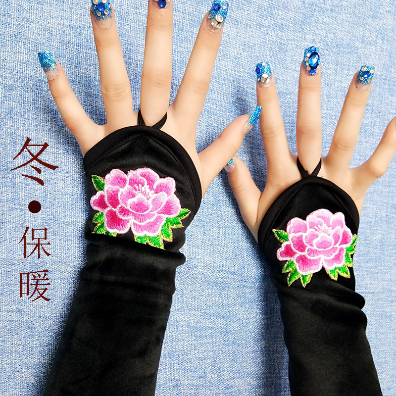 Winter Warm Sleeves Women Fashion National Wind Plus Suede Thickened Elastic False Cuff Plus Flowers Arms Sleeves Hook with meritocratic arm sleeves thickness