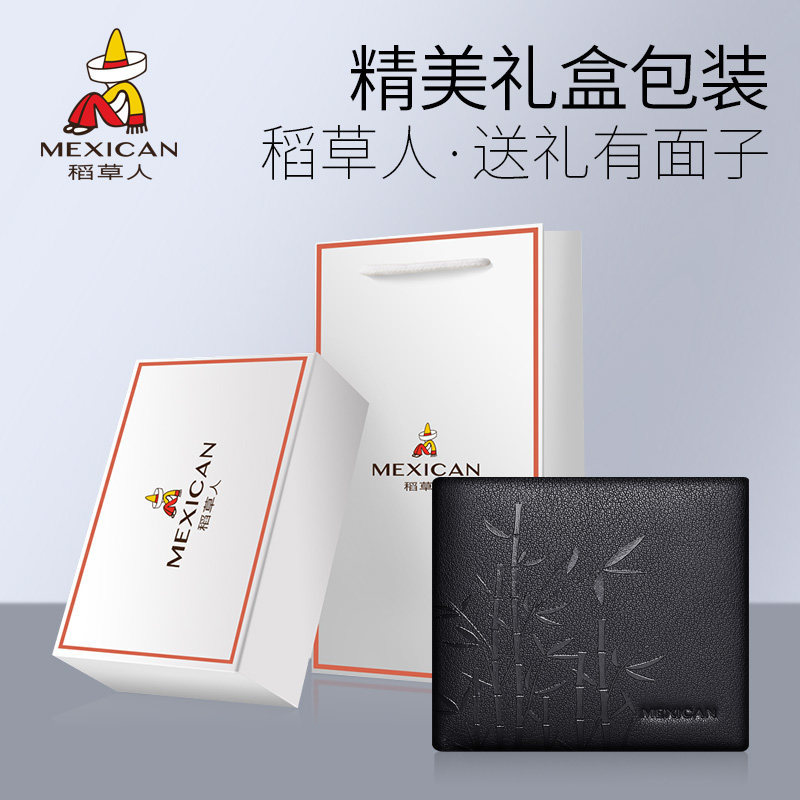 Scarecrow 2021 New Wallet Men's Leather Short Tide Brand Ultra-thin Gift Box for Boyfriend Dad Birthday Gift