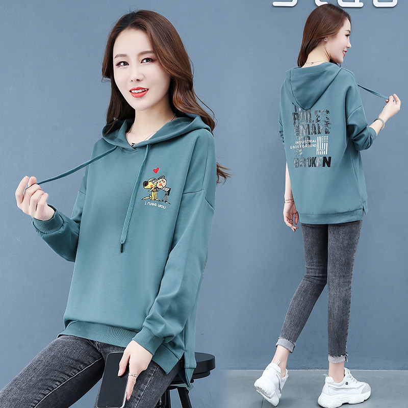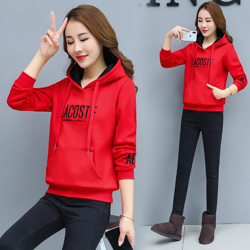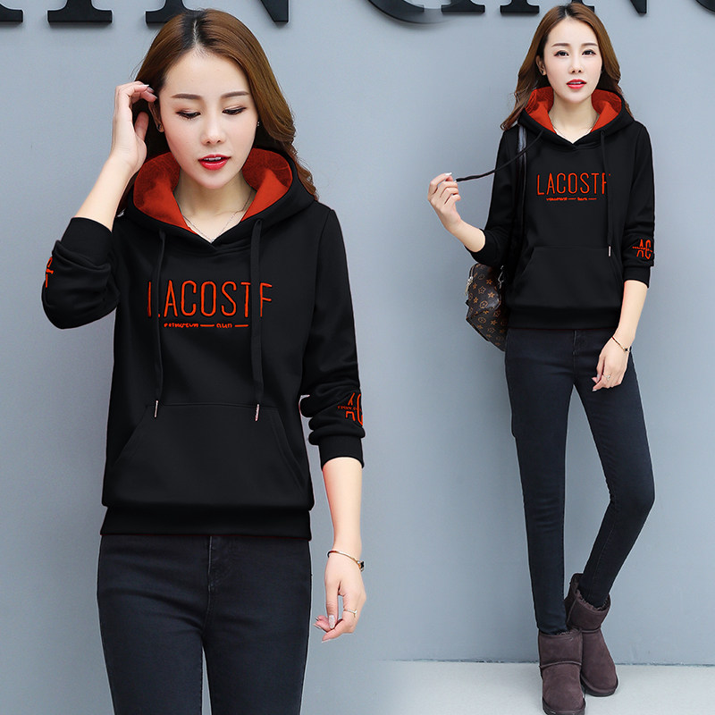 Plus Fleece thickened Lianhood Sports shirt Female loose Han version 2022 New spring autumn Winter Ocean sends a long sleeve blouse 100 hitch