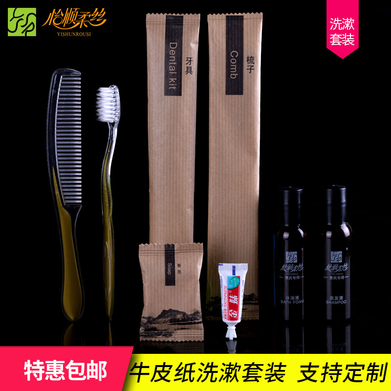Hotel hotel disposable toiletries set kraft paper toothbrush toothpaste dental appliance six in one six set