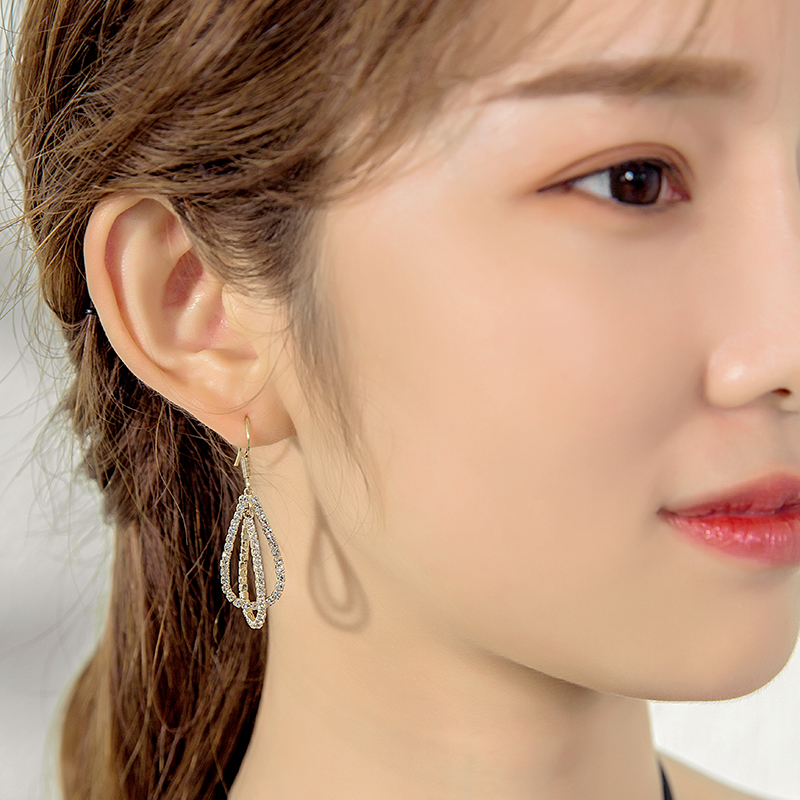 Korean version of fashion temperament zircon earrings female long version of sterling silver earrings personality all-match ladies hypoallergenic ear hook earrings earrings