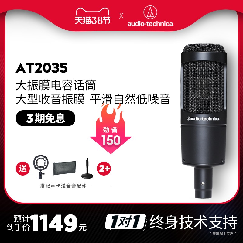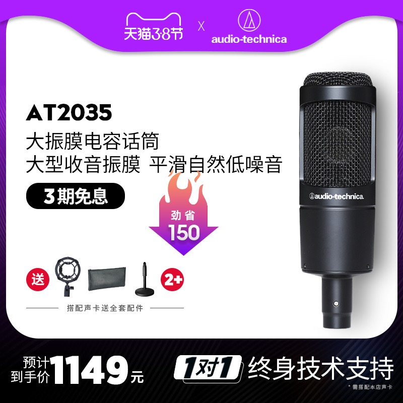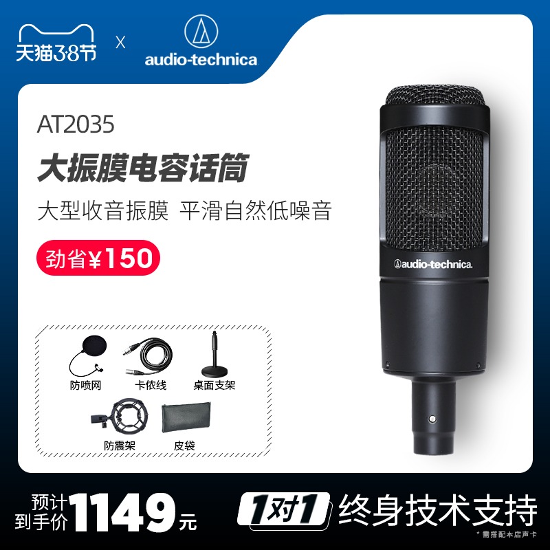 Audio Technica Iron Triangle AT2035 Anchor Capacitive Microphone Live Device Sound Card Suit