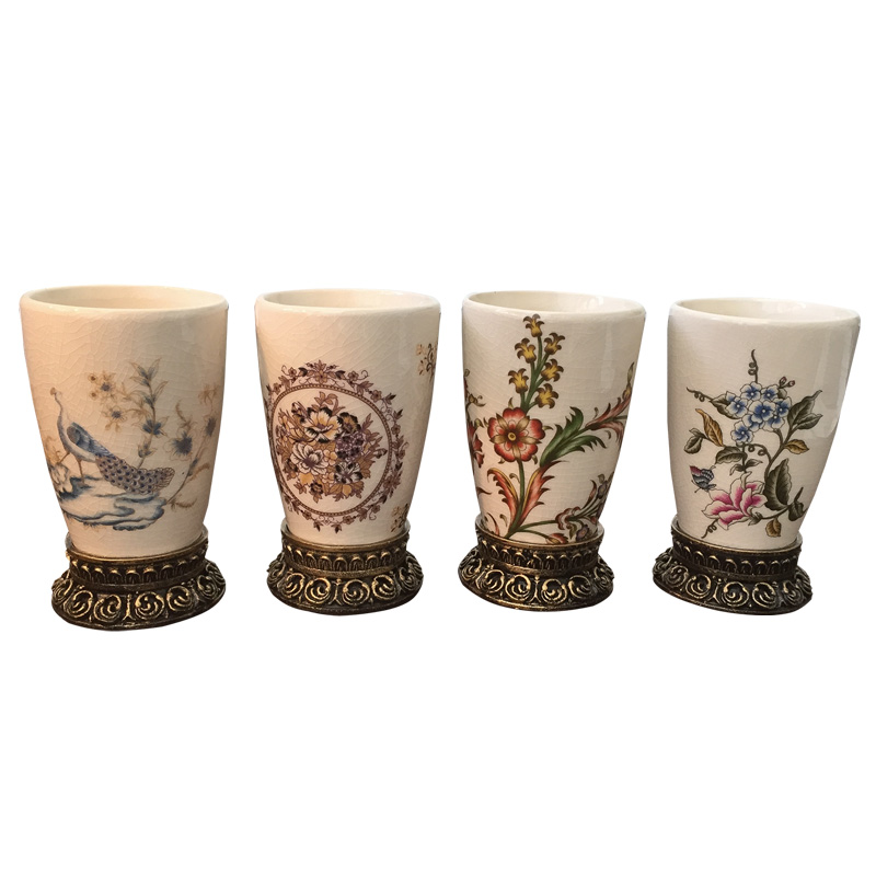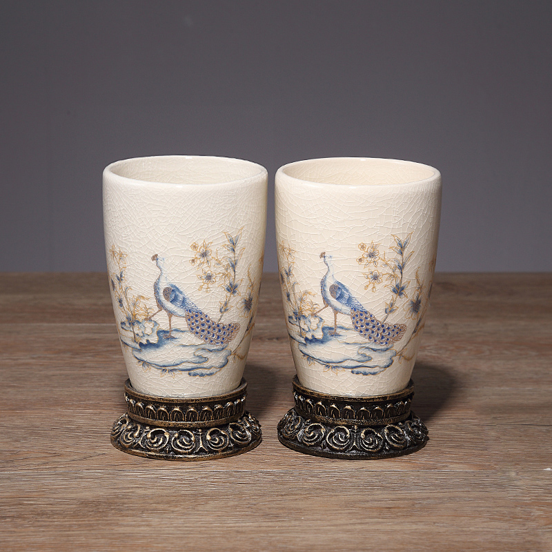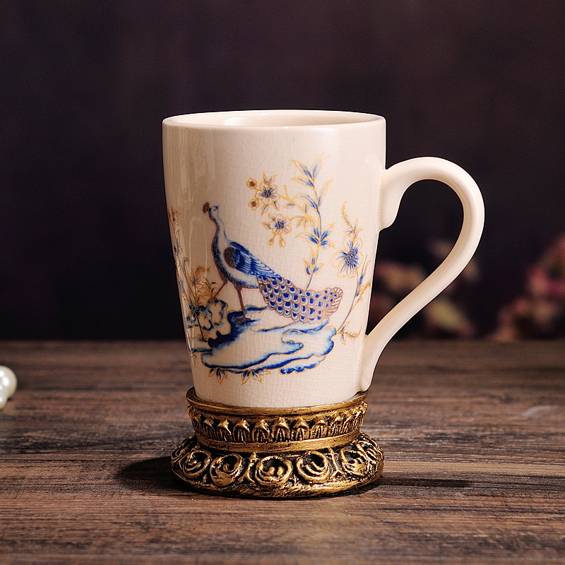 Golden wheel round mouth cup Rococo round mouth cup Blue peacock round mouth cup Phoenix tail flower round mouth cup
