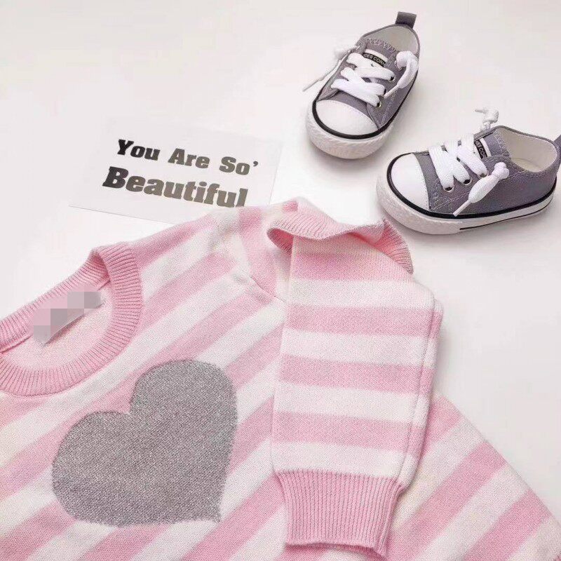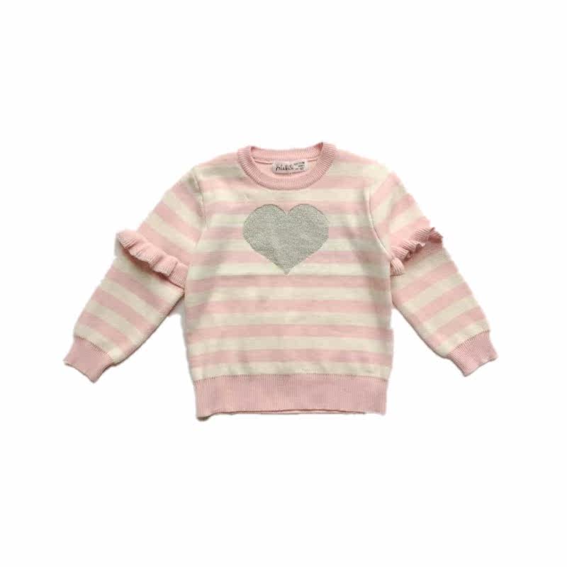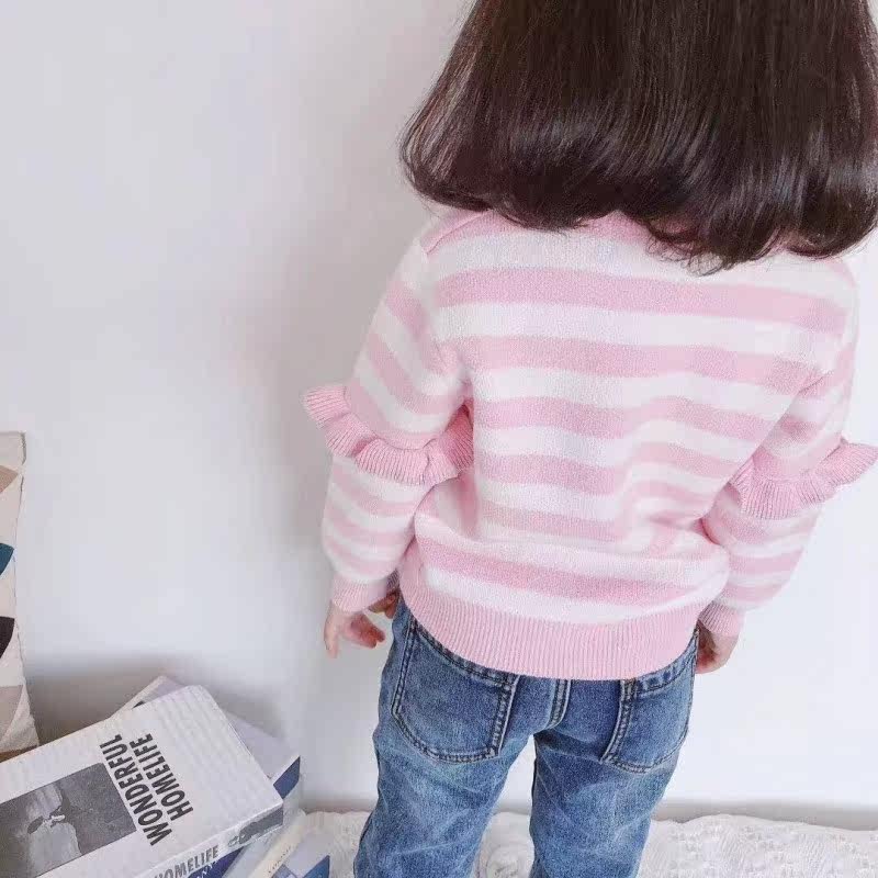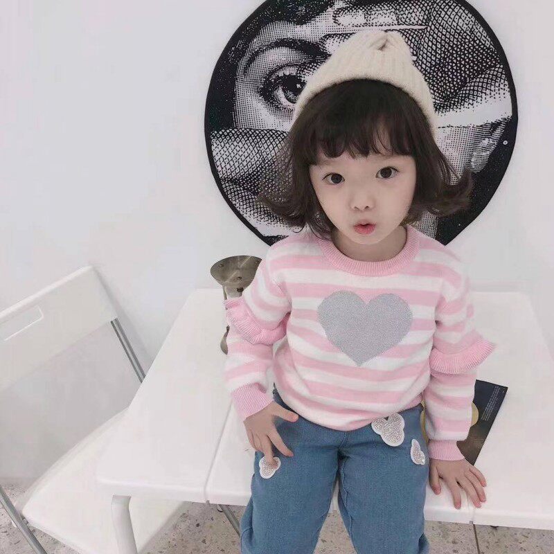 (Joe Home) Autumn Winter New Pint Girl Striped Silver Color Loving Knit Women's Agaric Lace Powder Tender Sweaters