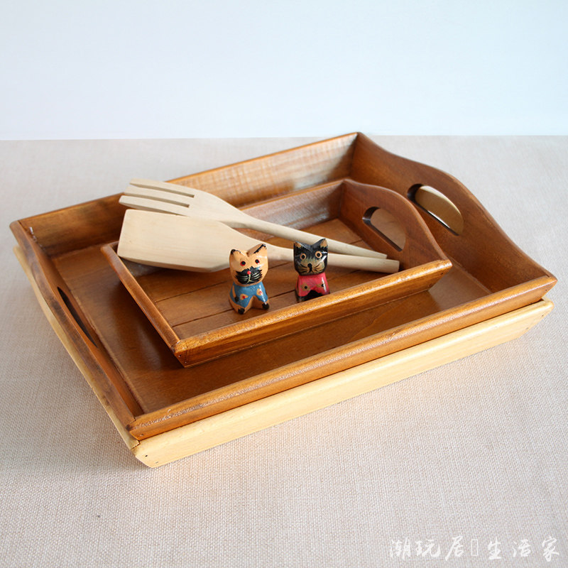 Wooden portable dishes retro made of old tea tray fruit tray Desktop Cosmetic Snack containing box Upper Tray Subflat Pan